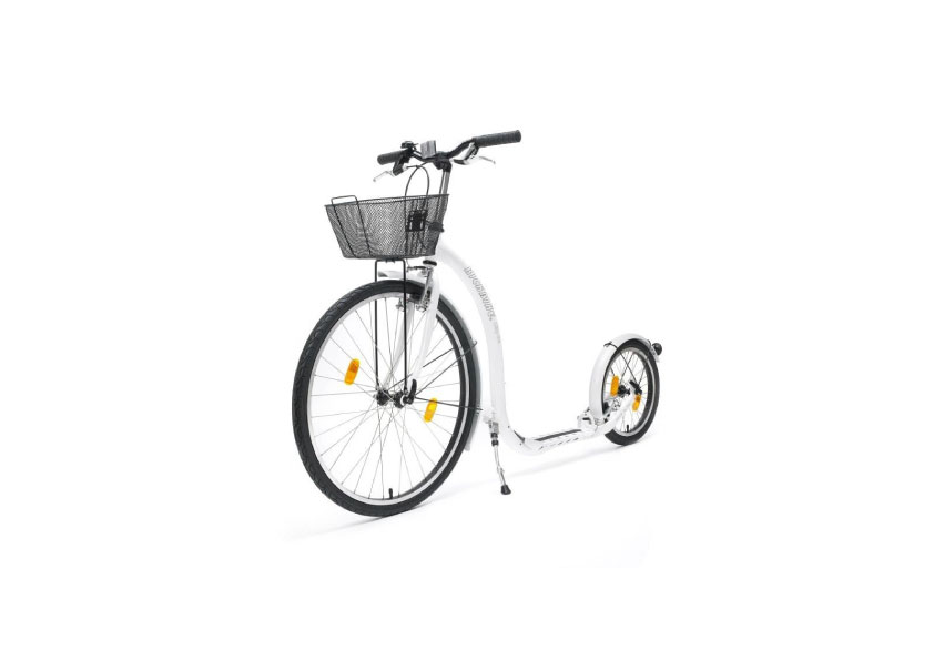 Nice upright position asks to be ridden without sports outfit. Kick with style to the nearby market. Your dress will thank the absence of saddle and greasy chains. As you glide along city streets you trim your legs and buttocks, improve your overall fitness, while spicing up your daily routine. You simply don’t notice the strain because kicking is so much fun! This model is also handy for employees at large warehouses, airports and such.